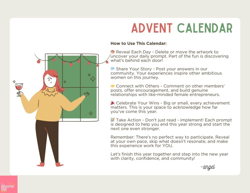 Transform your holiday season from overwhelm into connection, growth, and celebration with this free advent calendar designed specifically for ambitious women.